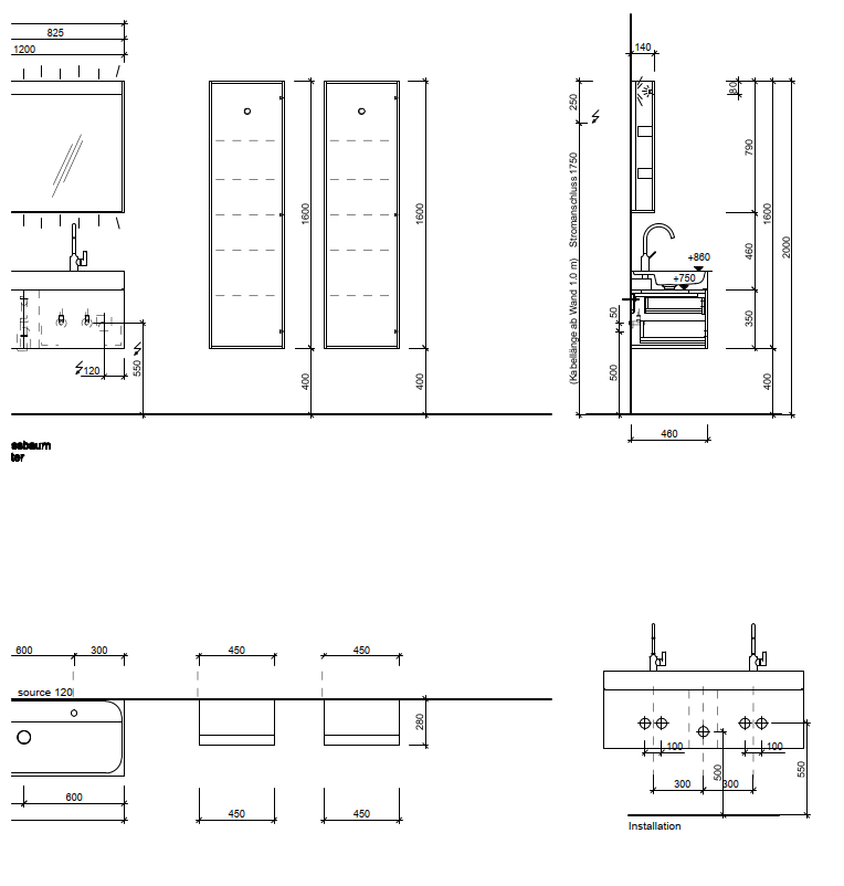 Achsmass Becken von links nach rechts 1050 / 600mm