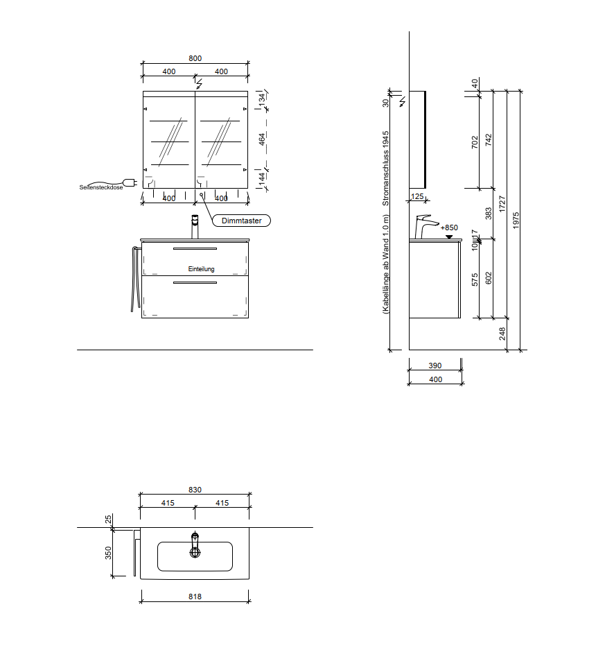 Breite Waschtisch 830 x 400mm