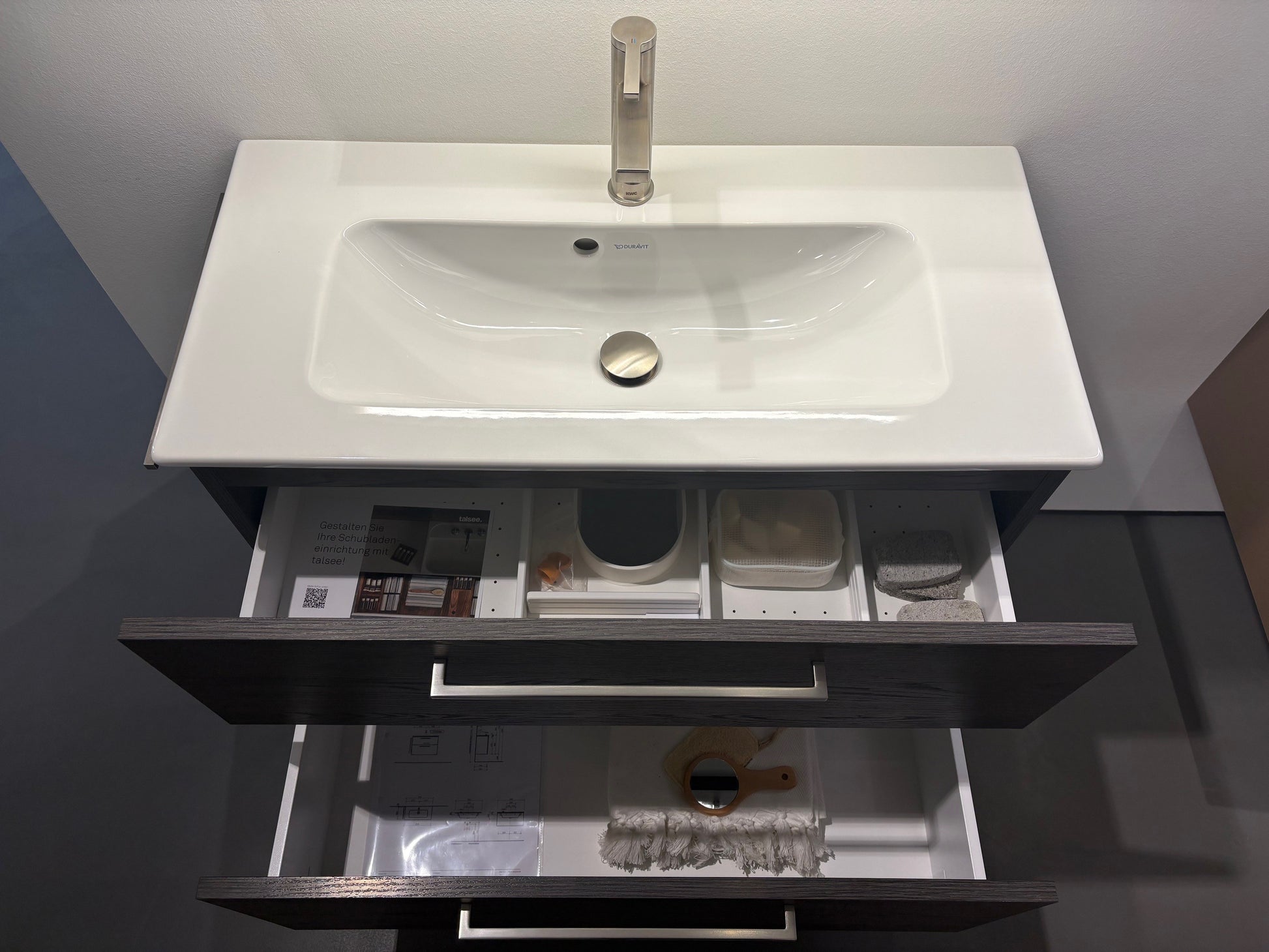 Ausführung Möbel Strukturlaminat Dark Oak- A018, 2 Schubladen, Bügelgriff GB96, Schubladenteiler