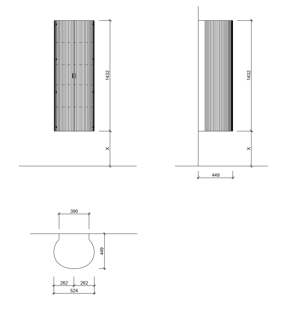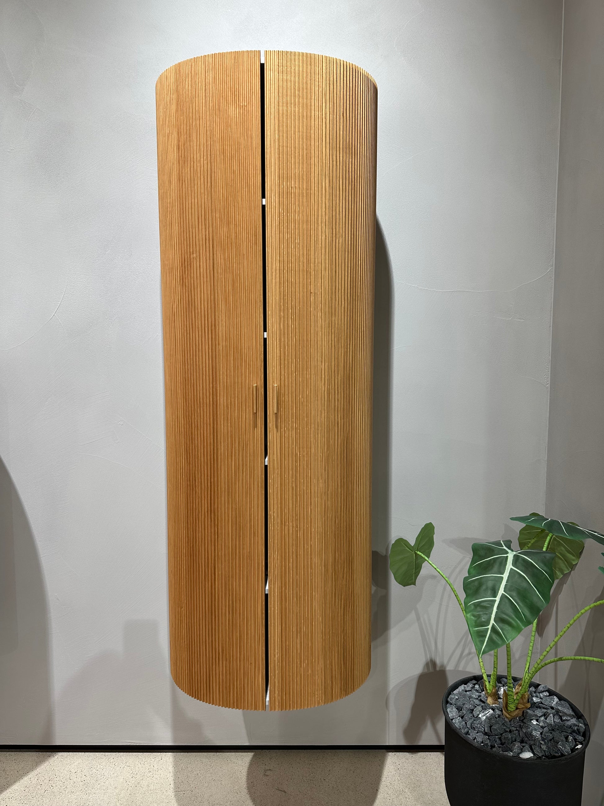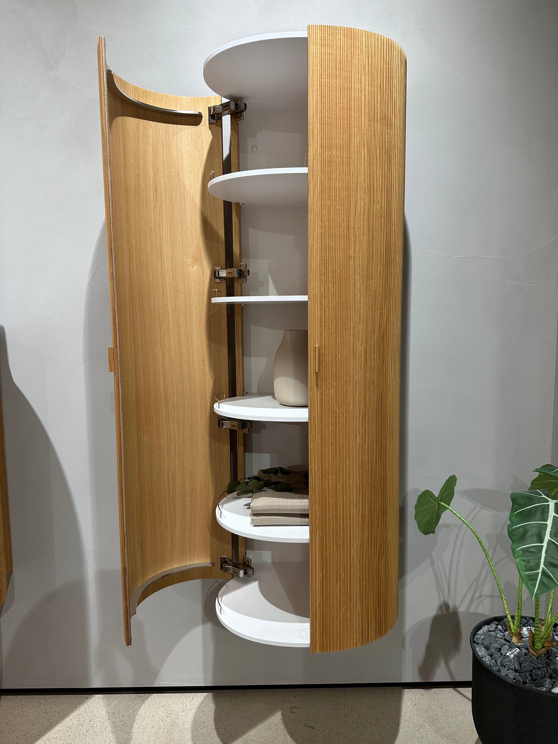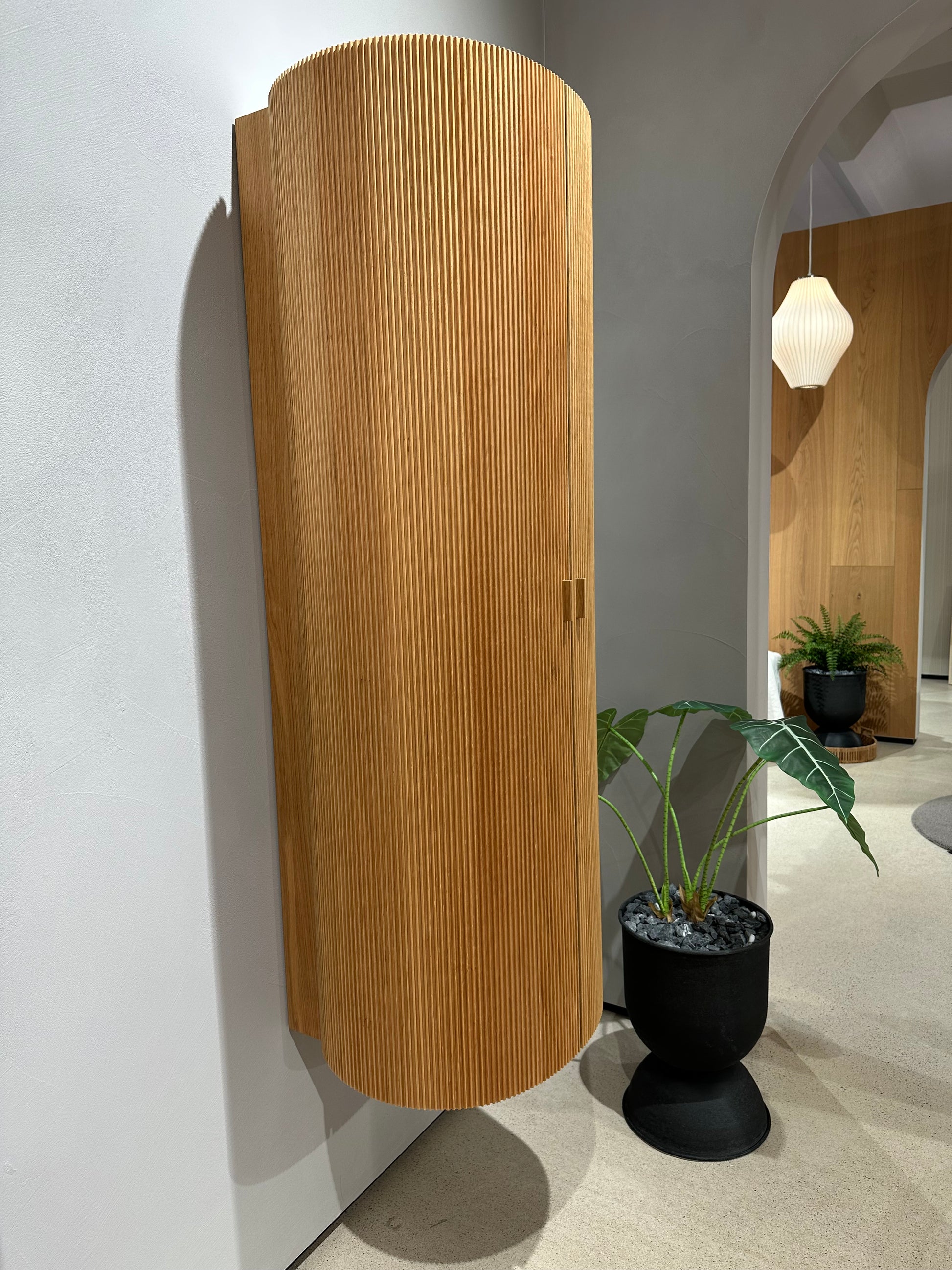 Ausführung Front Echtholz Relief Oak Ripple - G007, Aussenseiten Echtholzfurnier Eiche - C010, Doppeltüren, flow Griff, 4 Tablare